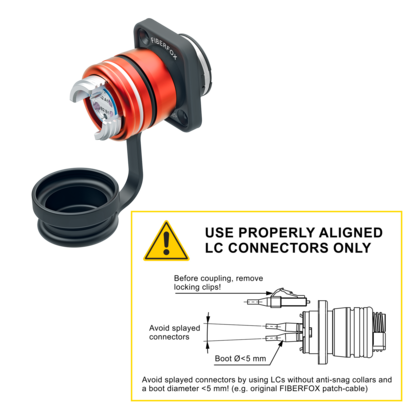 High performance LC patch cable to connect the rear side of the opticalCON®  DUO or opticalCON® QUAD and FIBERFOX chassis connectors with low insertion loss and optimized optical return loss values.